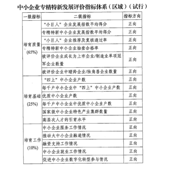 表現(xiàn)為:中小企業(yè)專精特新發(fā)展評(píng)價(jià)指標(biāo)體系-區(qū)域版(試行)